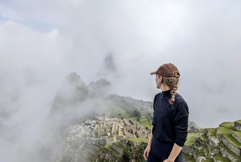 It’s often cloudy at Machu Picchu. When you arrive, you’ll likely have to throw your poles down and take a seat on the grass to wait for the clouds to clear. They usually do.